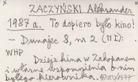 ZACZYŃSKI Aleksander 1987 a To dopiero było kino!