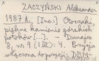ZACZYŃSKI Aleksander 1987 d [Inc.:] Otoczaki, piękne kamienie górskich potoków [...].