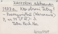 ZACZYŃSKI Aleksander 1987 e Kto obroni Tatry?