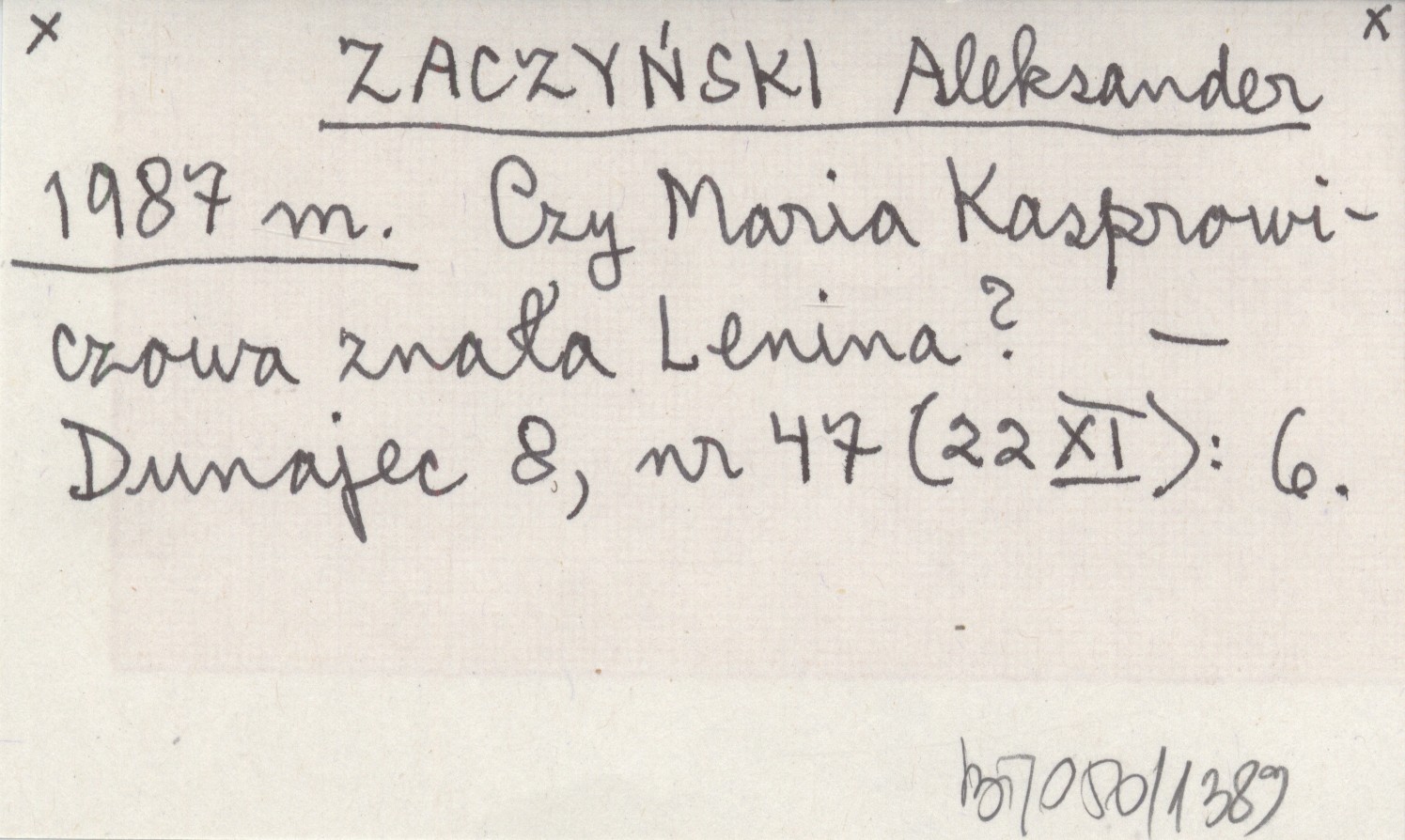 ZACZYŃSKI Aleksander 1987 m Czy Maria Kasprowiczowa znała Lenina?