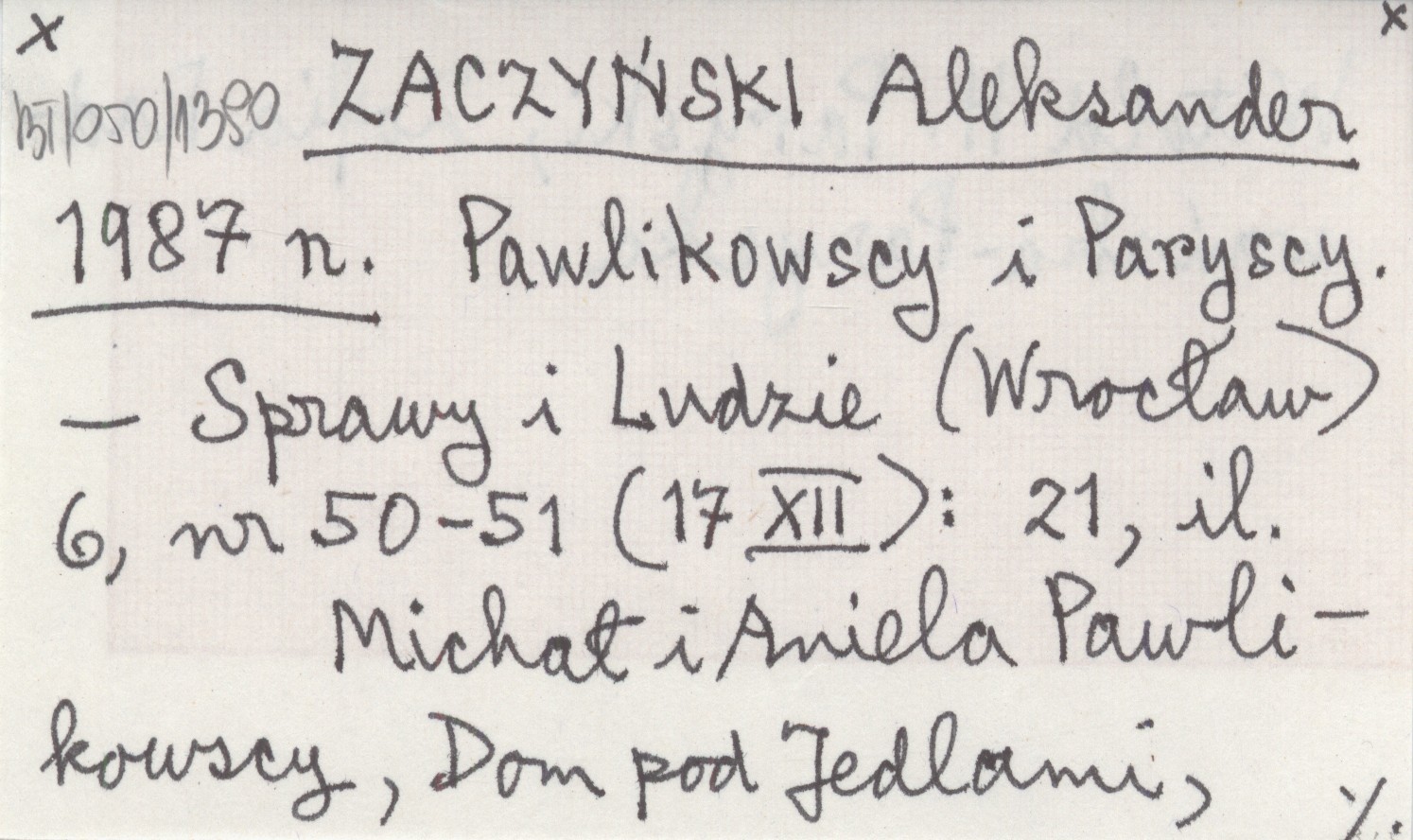ZACZYŃSKI Aleksander 1987 n Pawlikowscy i Paryscy.