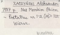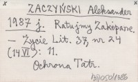 ZACZYŃSKI Aleksander 1987 p Nad Morskim Okiem.