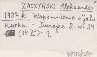ZACZYŃSKI Aleksander 1987 k Wspomnienie o Jalu Kurku.