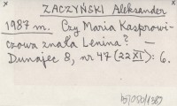 ZACZYŃSKI Aleksander 1987 m Czy Maria Kasprowiczowa znała Lenina?