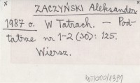 ZACZYŃSKI Aleksander 1988 Tatry w Nowym Sączu?