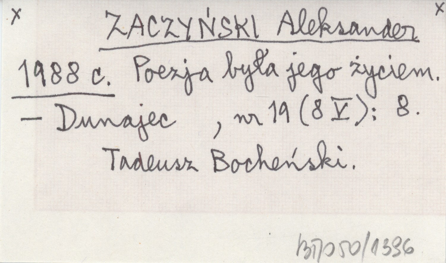 ZACZYŃSKI Aleksander 1988 c Poezja była jego życiem.