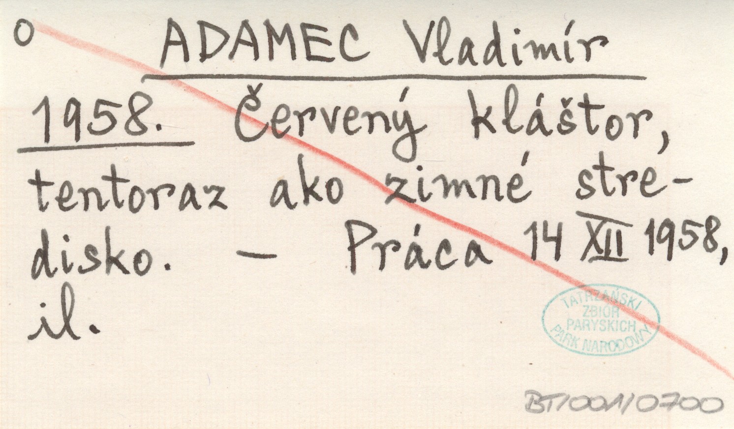 ADAMEC Vladimír 1958 Červený kláštor, tentoraz ako zimné stredisko.