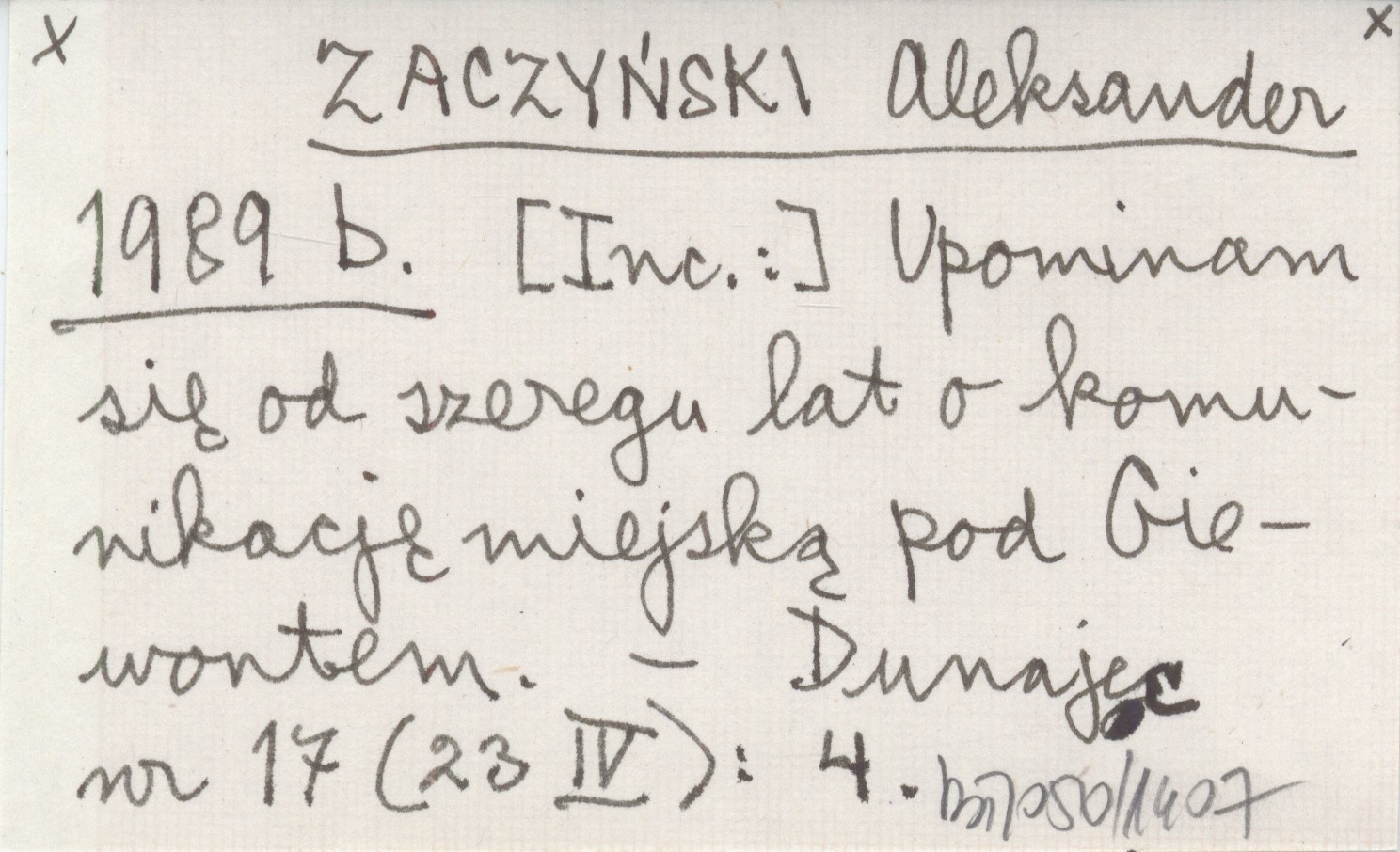 ZACZYŃSKI Aleksander 1989 b [Inc.:] Upominam się od szeregu lat o komunikację miejską pod Giewontem.
