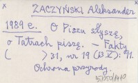 ZACZYŃSKI Aleksander 1989 e O Piszu słyszę, o Tatrach piszę.