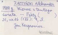 ZACZYŃSKI Aleksander 1989 g Wiersze z tamtego świata.