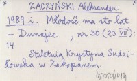 ZACZYŃSKI Aleksander 1989 h Sietniak.