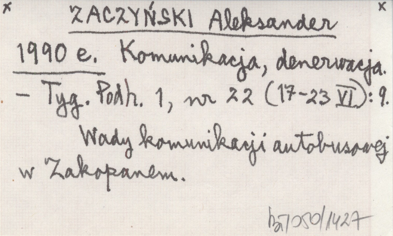 ZACZYŃSKI Aleksander 1990 e Komunikacja, denerwacja.