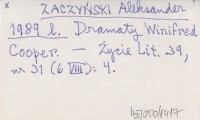 ZACZYŃSKI Aleksander 1989 l Dramaty Winifred Cooper.