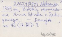 ZACZYŃSKI Aleksander 1989 m Krótkie opowiadania. Anna Górska z Zakopanego...