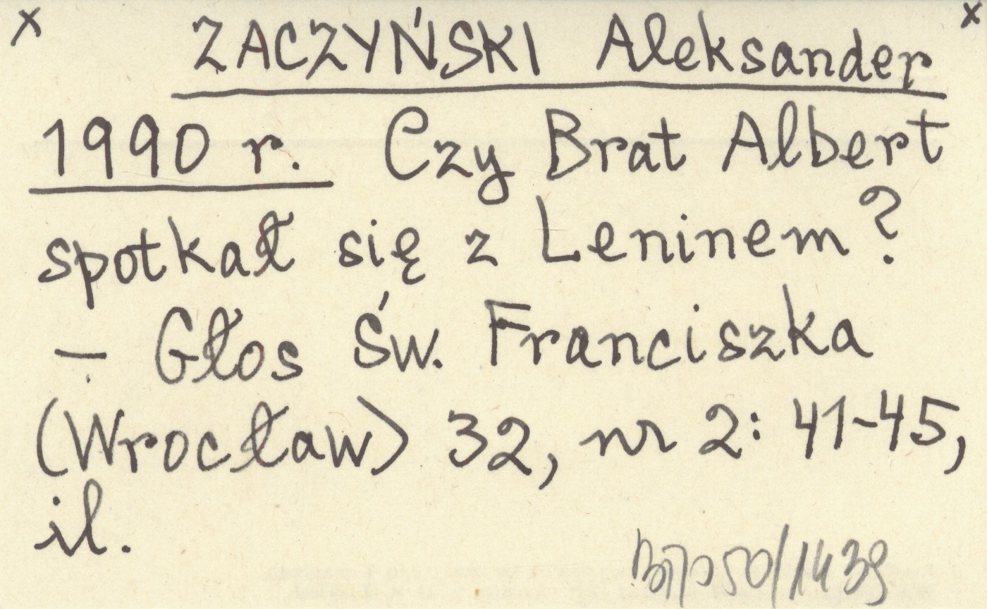 ZACZYŃSKI Aleksander 1990 r Czy Brat Albert spotkał się z Leninem?