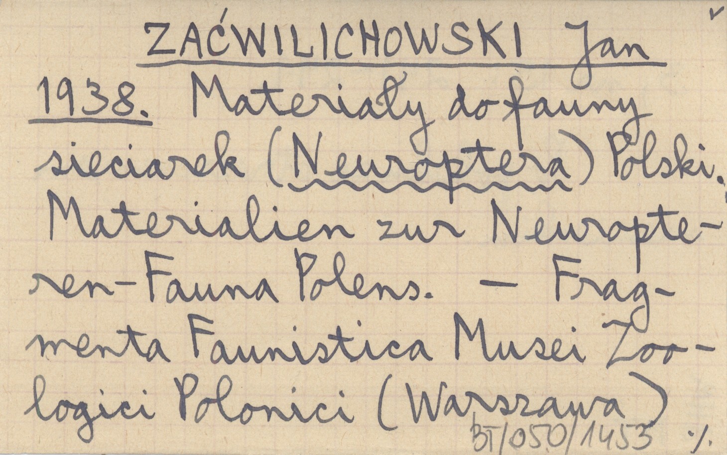 ZAĆWILICHOWSKI Jan 1938 Materiały do fauny sieciarek (Neuroptera) Polski. Materialien zur Neuropteren-Fauna Polens.