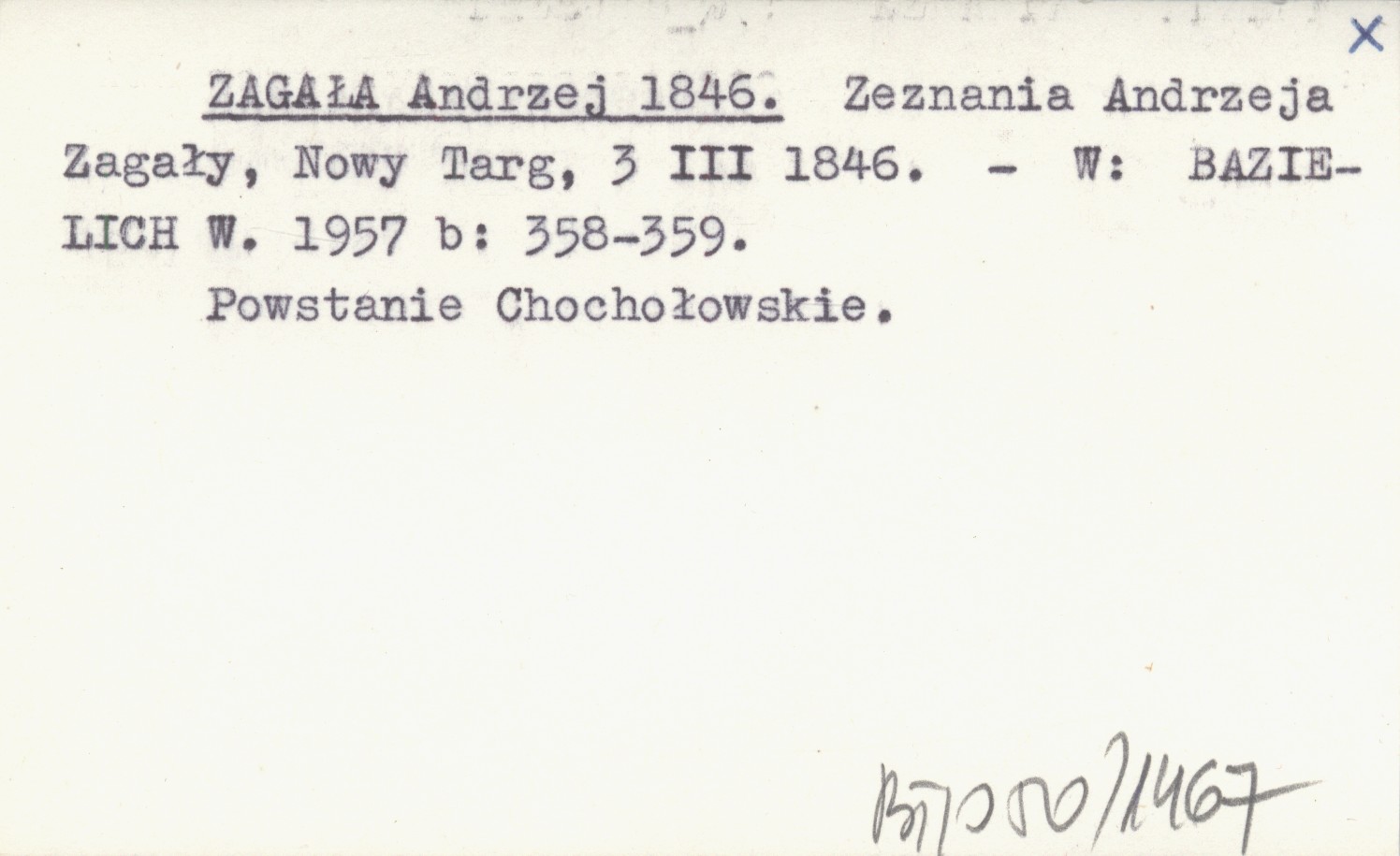 ZAGAŁA Andrzej 1846 Zeznania Andrzeja Zagały, Nowy Targ, 3 III 1846.