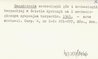 Zagadnienia archeologii gór i archeologii karpackiej w świetle dyskusji na I archeologicznym sympozjum karpackim. 1963