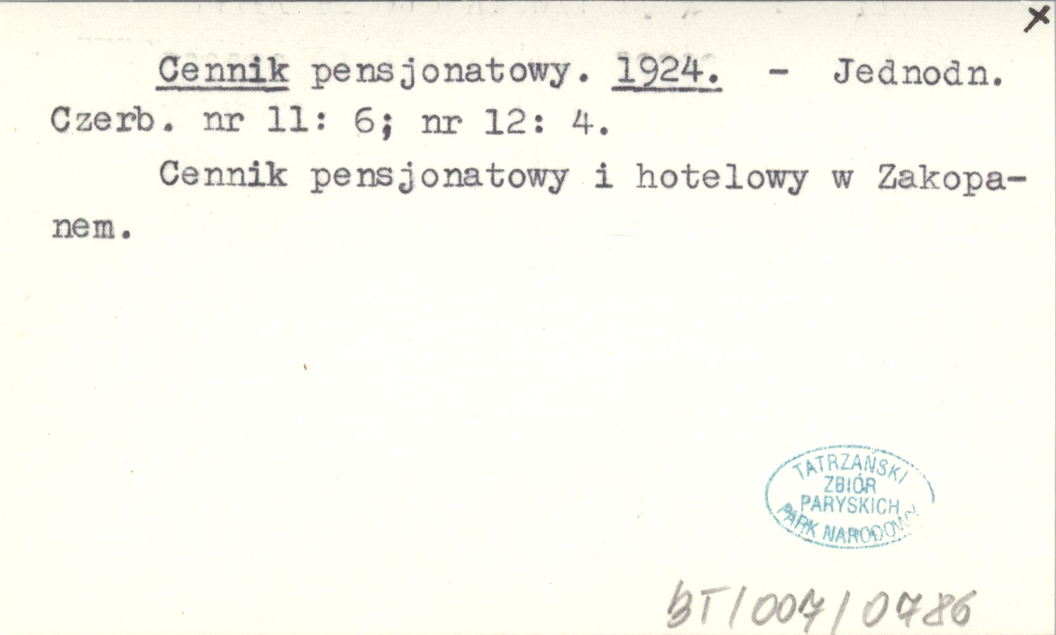 Jednodniówka Czerbaka, Nr 11: 6 ; nr 12: 4. Cennik pensjonatowy i hotelowy w Zakopanem.