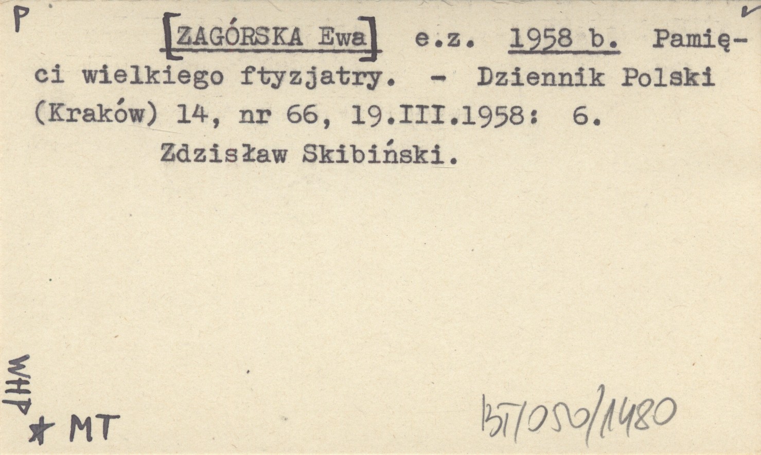 e. z. [ZAGÓRSKA Ewa] 1958 b Pamięci wielkiego ftyzjatry.