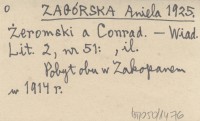 ZAGÓRSKA Aniela 1925 Żeromski a Conrad.