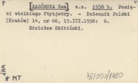 e. z. [ZAGÓRSKA Ewa] 1958 b Pamięci wielkiego ftyzjatry.