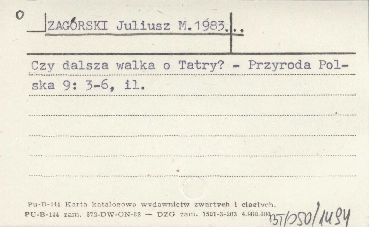 ZAGÓRSKI Juliusz M. 1983... Czy dalsza walka o Tatry?
