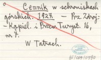 Cennik w schroniskach górskich. 1927