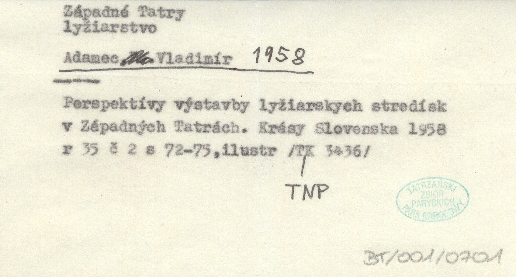 ADAMEC Vladimír 1958 Perspektívy výstavby lyľiarskych stredísk v Západných Tatrách.