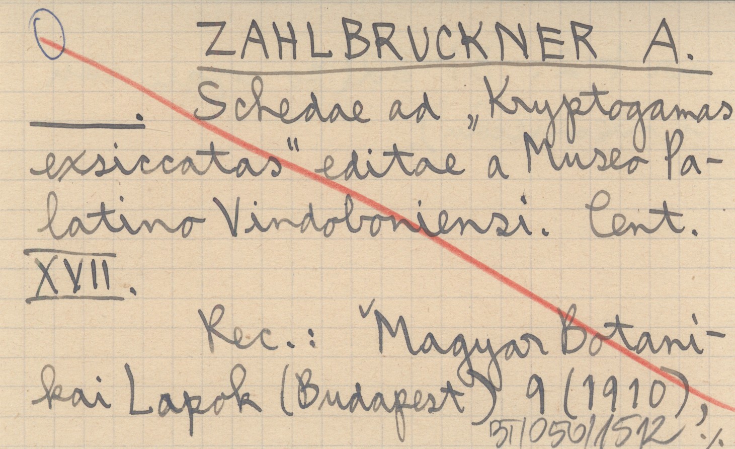 ZAHLBRUCKNER A. Schedae ad "Kryptogamas exsiccatas" editae a Museo Palatino Vindoboniensi. Cent. XVII.