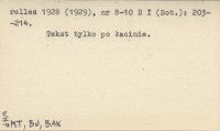 Bulletin International de l'Akadémie Polonaise des Sciences et des Lettres, Classe des Sciences Mathématiques et Naturalles (Cracovie) , 1928 (1929), nr 8-10 B I (Bot.): 203-214. Tekst tylko po łacinie.