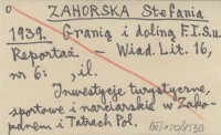 ZAHORSKA Stefania 1939 Granią i doliną F.I.S.u. Reportaż.