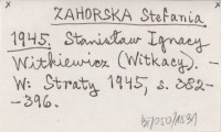 ZAHORSKA Stefania 1945 Stanisław Ignacy Witkiewicz (Witkacy).