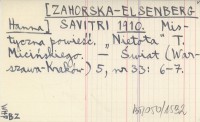 SAVITRI [ZAHORSKA-ELSENBERG Hanna] 1910 Mistyczna powieść. "Nietota" T. Micińskiego.