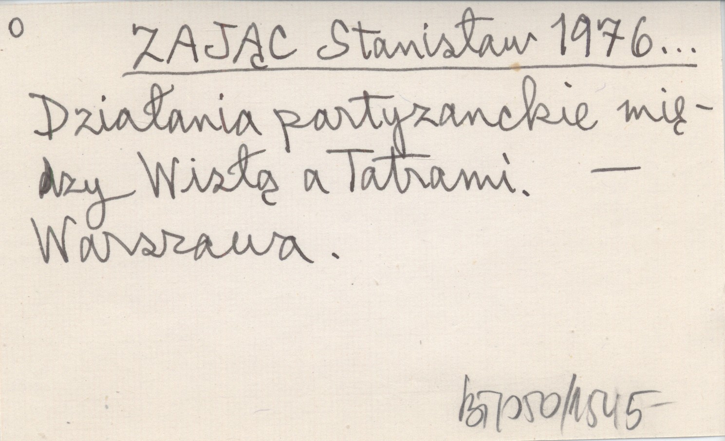 ZAJĄC Stanisław 1976... Działania partyzanckie między Wisłą a Tatrami.
