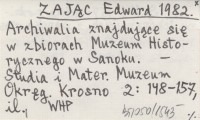 ZAJĄC Edward 1982 Archiwalia znajdujące się w zbiorach Muzeum Historycznego w Sanoku.