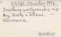 ZAJĄC Stanisław 1976... Działania partyzanckie między Wisłą a Tatrami.