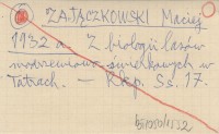ZAJĄCZKOWSKI Maciej 1932 a Z biologii lasów modrzewiowo-świerkowych w Tatrach.