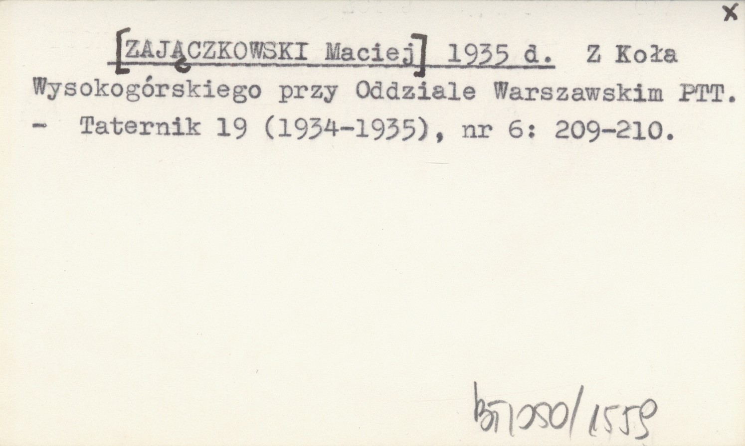 [ZAJĄCZKOWSKI Maciej] 1935 d Z Koła Wysokogórskiego przy Oddziale Warszawskim PTT.