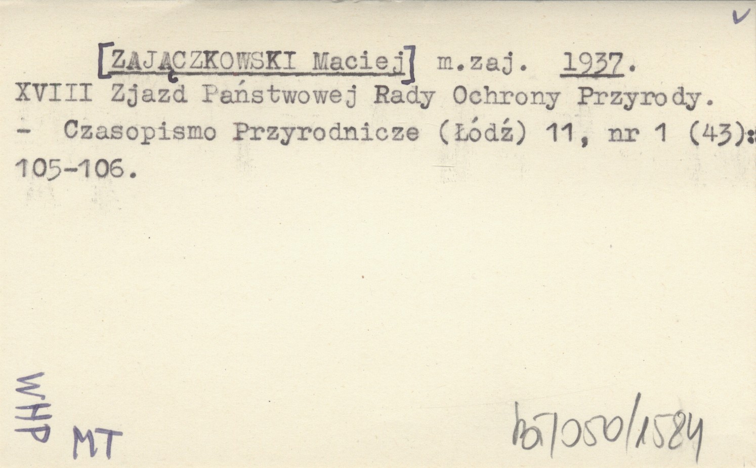 m. zaj. [ZAJĄCZKOWSKI Maciej] 1937 XVIII Zjazd Państwowej Rady Ochrony Przyrody.