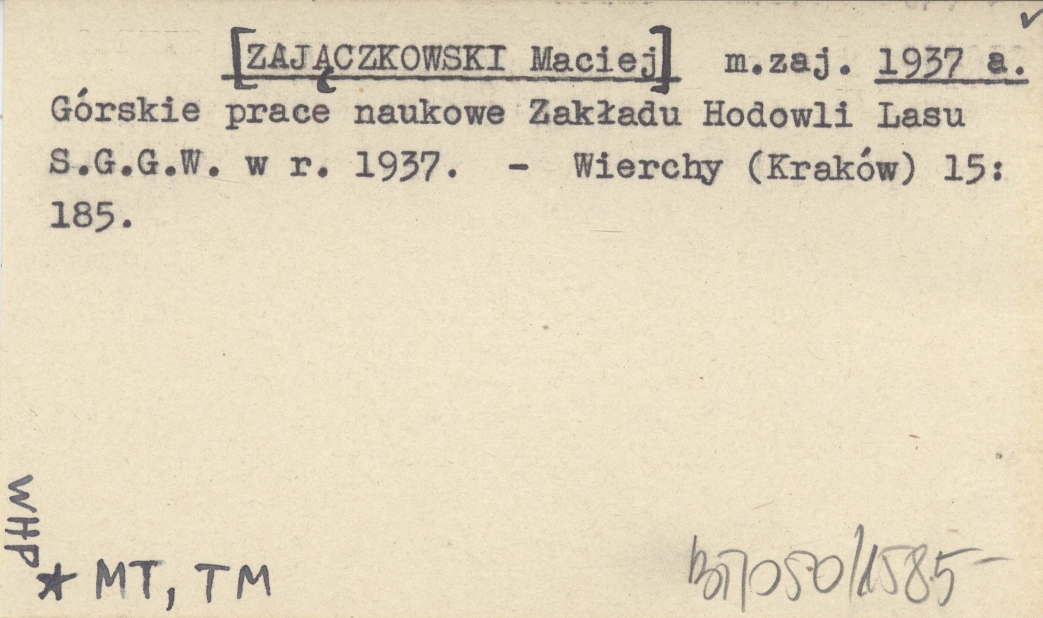 m. zaj. [ZAJĄCZKOWSKI Maciej] 1937 a Górskie prace naukowe Zakładu Hodowli Lasu S.G.G.W. w r. 1937.