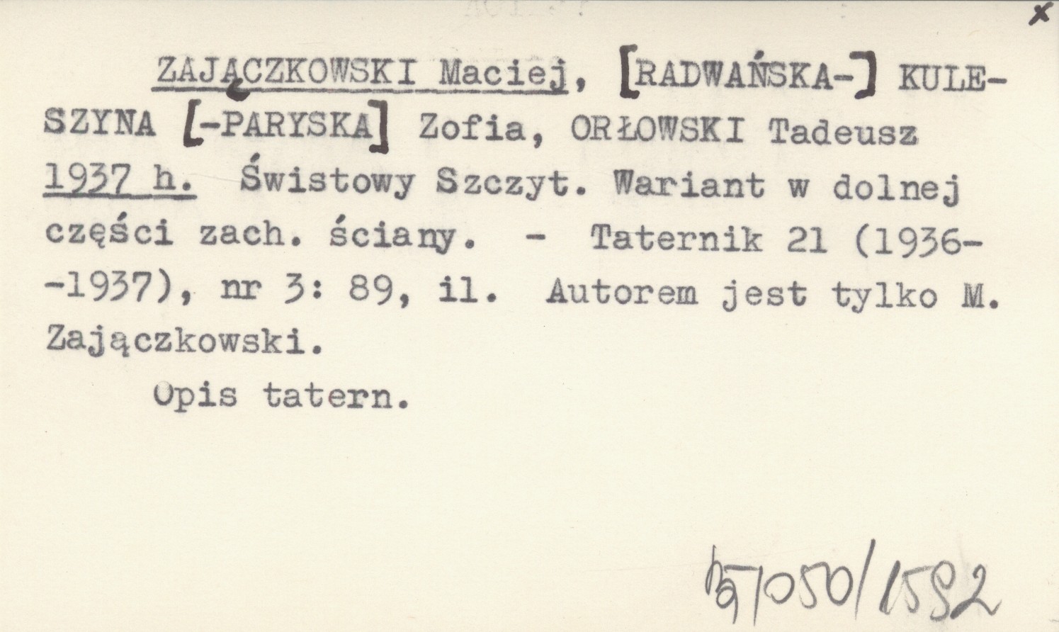 Taternik, 21 (1936-1937), nr 3: 89, il. Opis taternicki. Autorem jest tylko M. Zajączkowski.