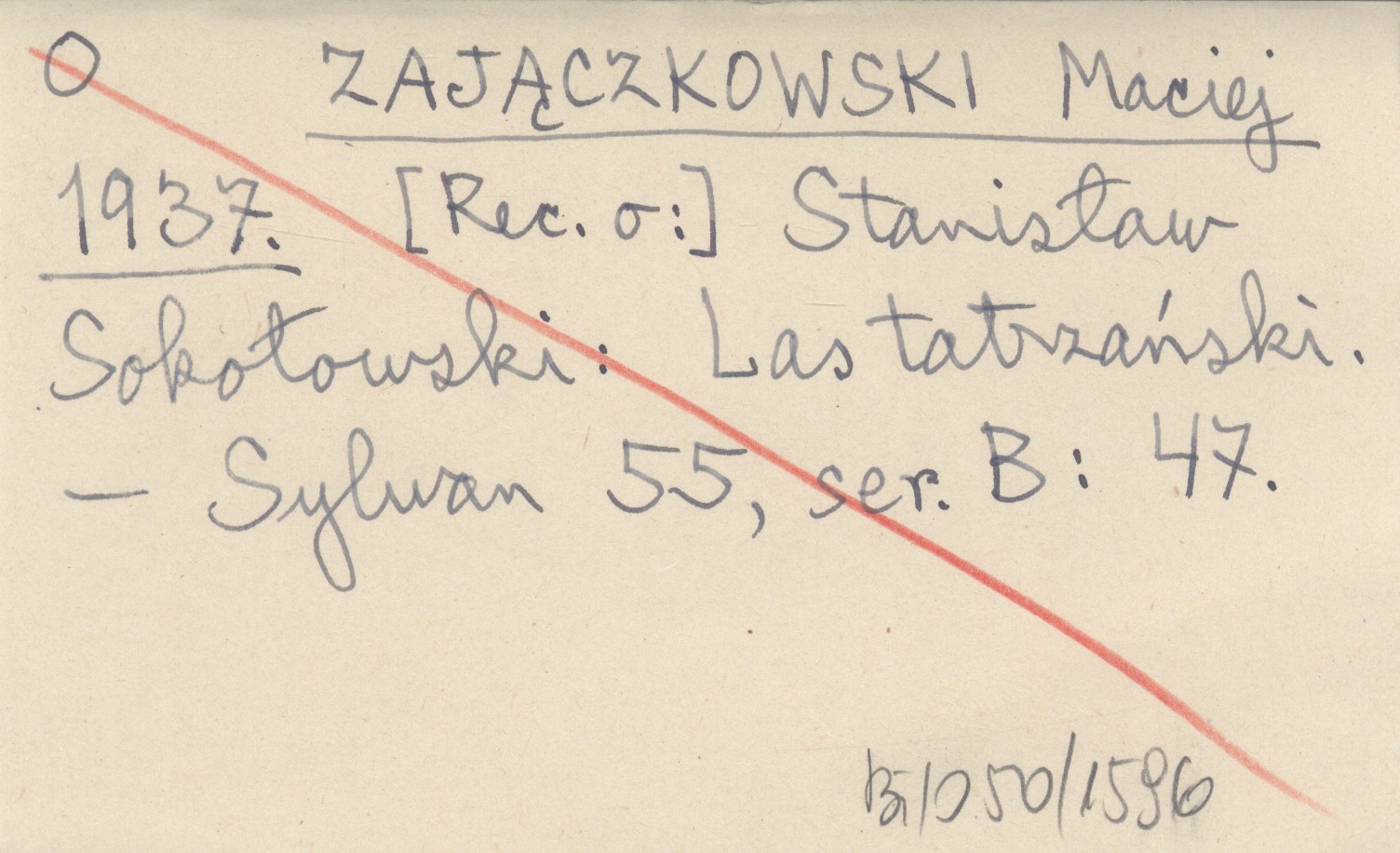 ZAJĄCZKOWSKI Maciej 1937 [Rec. o:] Stanisław Sokołowski: Las tatrzański.