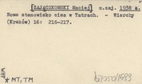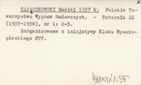 m. zaj. [ZAJĄCZKOWSKI Maciej] 1938 a Nowe stanowisko cisa w Tatrach.