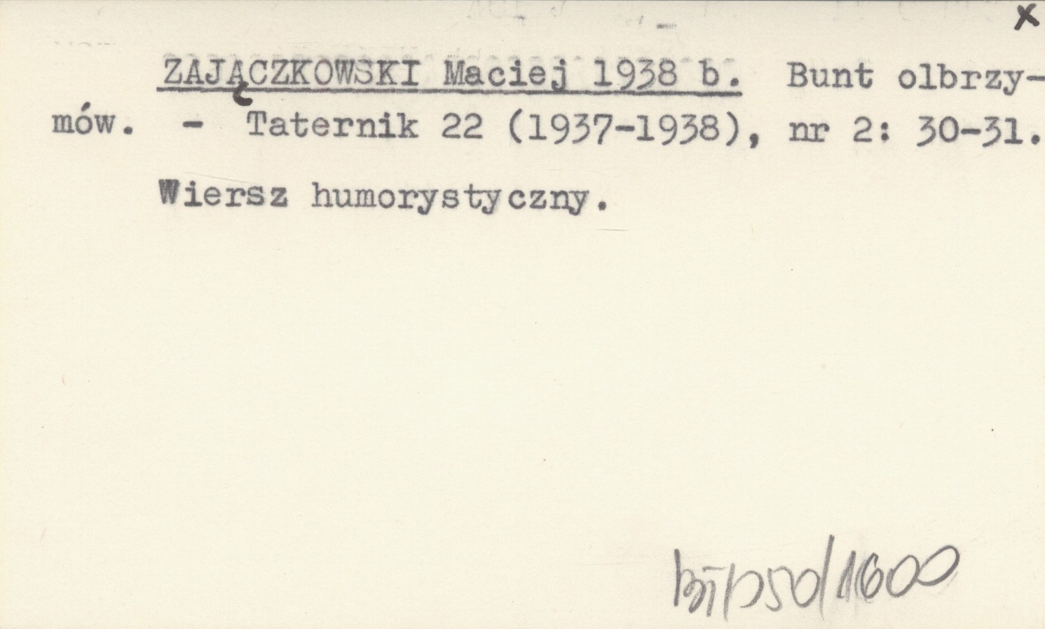 Taternik, 22 (1937-1938), nr 2: 30-31. Wiersz humorystyczny.