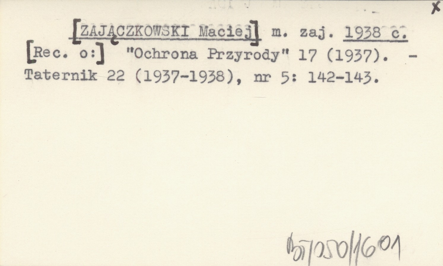 m. zaj. [ZAJĄCZKOWSKI Maciej] 1938 c [Rec. o:] "Ochrona Przyrody" 17 (1937).