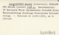 ZAJĄCZKOWSKI Maciej SOKOŁOWSKI, Marian. ; 1938 e Zawiadomienie. IV Zwyczajne Walne Zgromadzenie Członków Klubu Wysokogórskiego Polskiego Towarzystwa Tatrzańskiego.
