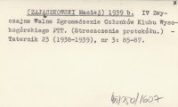 [ZAJĄCZKOWSKI Maciej] 1939 b IV Zwyczajne Walne Zgromadzenie Członków Klubu Wysokogórskiego PTT. (Streszczenie protokółu).