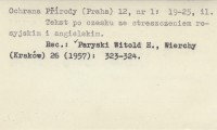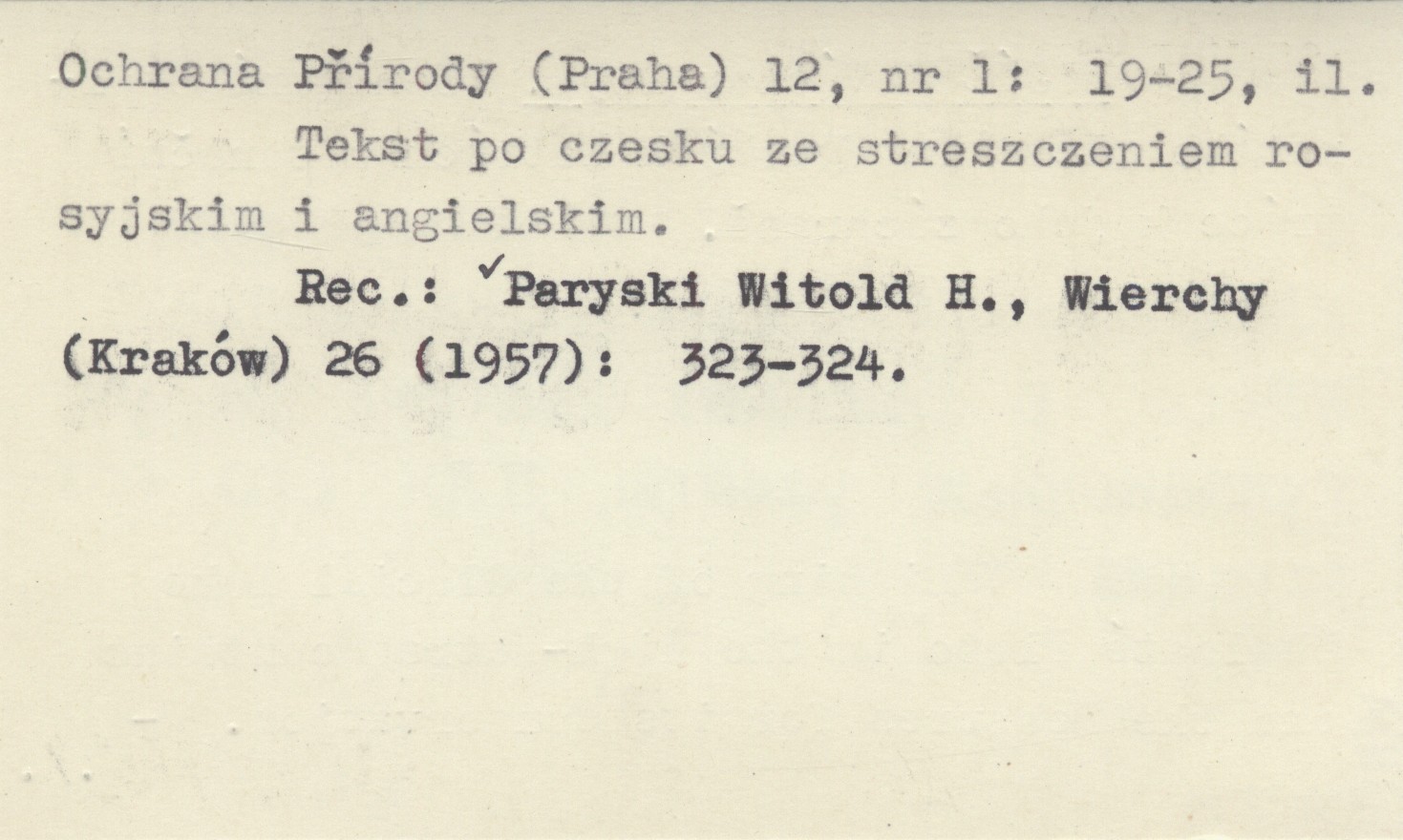 Ochrana Přírody (Praha) , 12, nr 1: 19-25, il. Tekst po czesku ze streszczeniem rosyjskim i angielskim. REC: PARYSKI Witold H., Wierchy (Kraków) 26 (1957): 323-324.