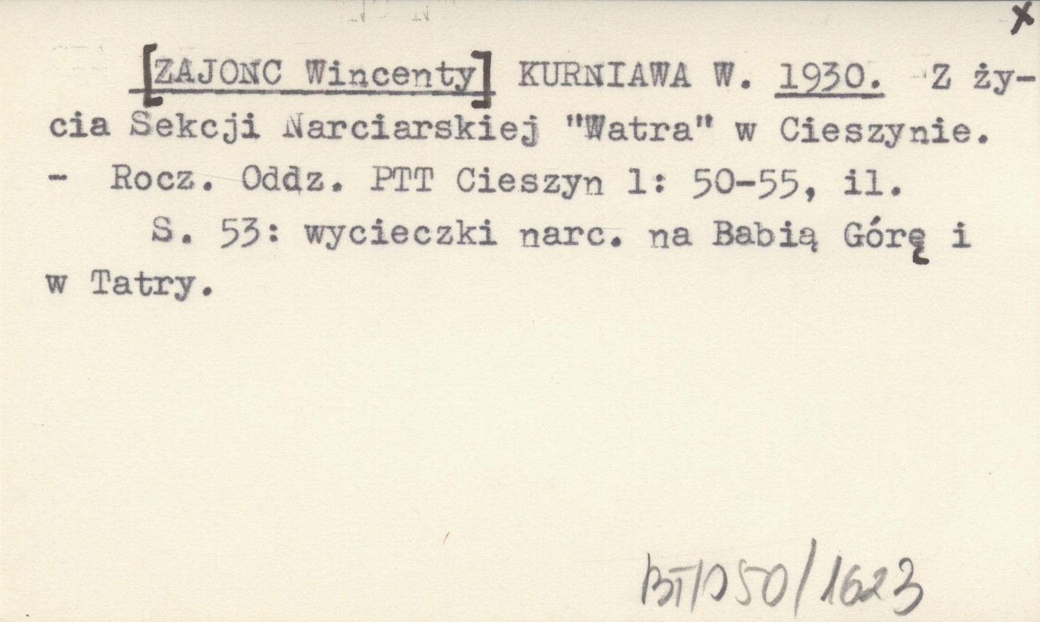 Rocznik Oddziału Polskiego Towarzystwa Tatrzańskiego (Cieszyn) , 1: 50-55, il. S. 53: wycieczki narciarskie na Babią Górę i w Tatry.